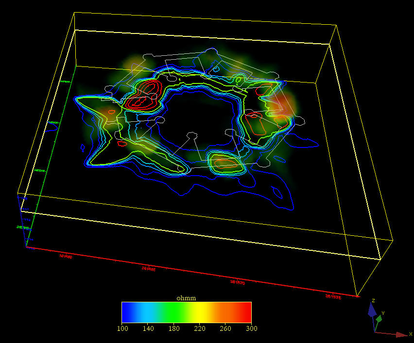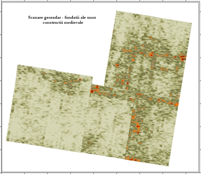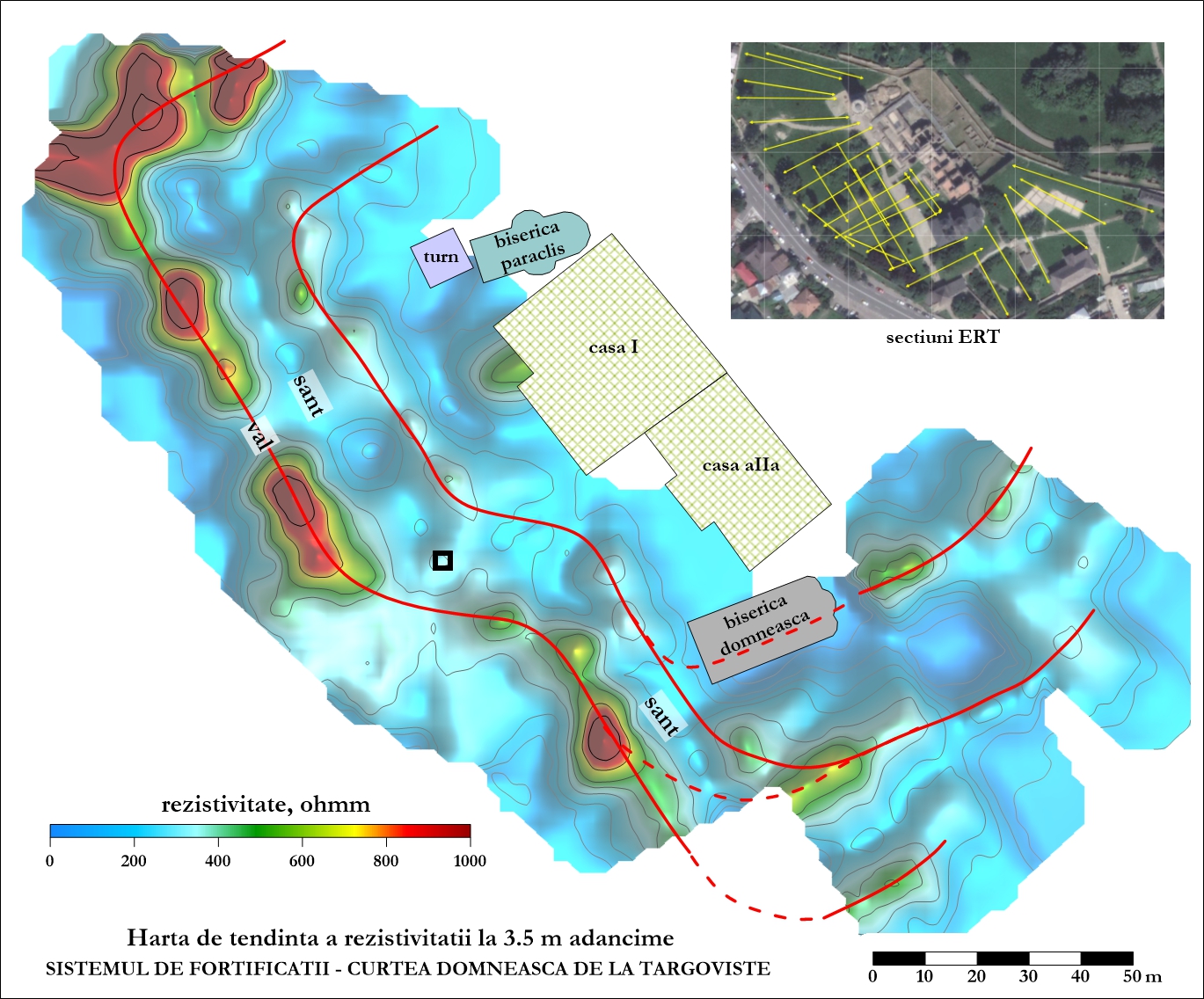 Tomografie de rezistivitate (70 x 35 x 2 m) castru roman si biserica medievala